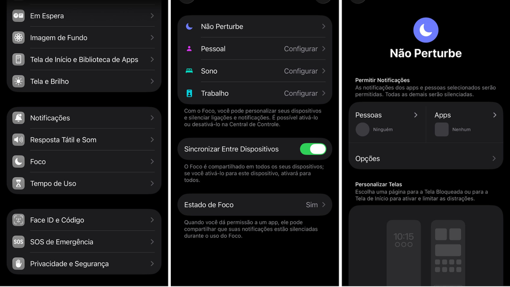 O modo “Não Perturbe” faz parte dos modos de Foco do iOS e bloqueia chamadas e alertas em momentos estratégicos, como durante o trabalho ou antes de dormir.