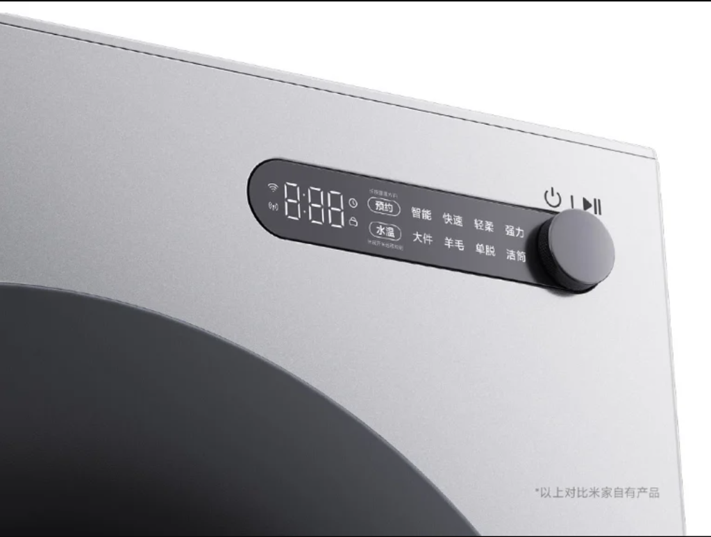O controle da máquina de lavar de 12 kg da Xiaomi é simplificado por meio de um botão giratório frontal, pensado para facilitar a seleção dos ciclos de lavagem. A proposta é unir estética minimalista com usabilidade intuitiva.