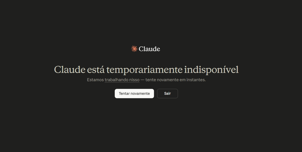 O serviço mostra uma mensagem “O Claude está temporariamente indisponível” e sequer abre a janela de conversa.