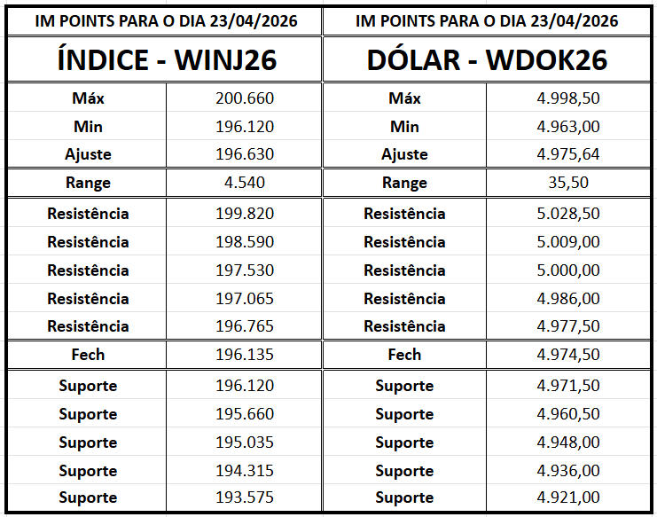 Confira, agora, os principais pontos de suporte e resistência para os minicontratos de dólar e de índice para esta quinta-feira (23).